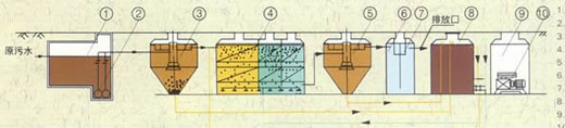 (1)初沉池:設備初沉池為豎流式沉淀池,污水在沉淀池的上升流速為0.6-0.7毫米/秒,沉淀下來的污泥用空氣提至污泥池。(注:WSZ-A O.5-5m3/h不設初沉池)