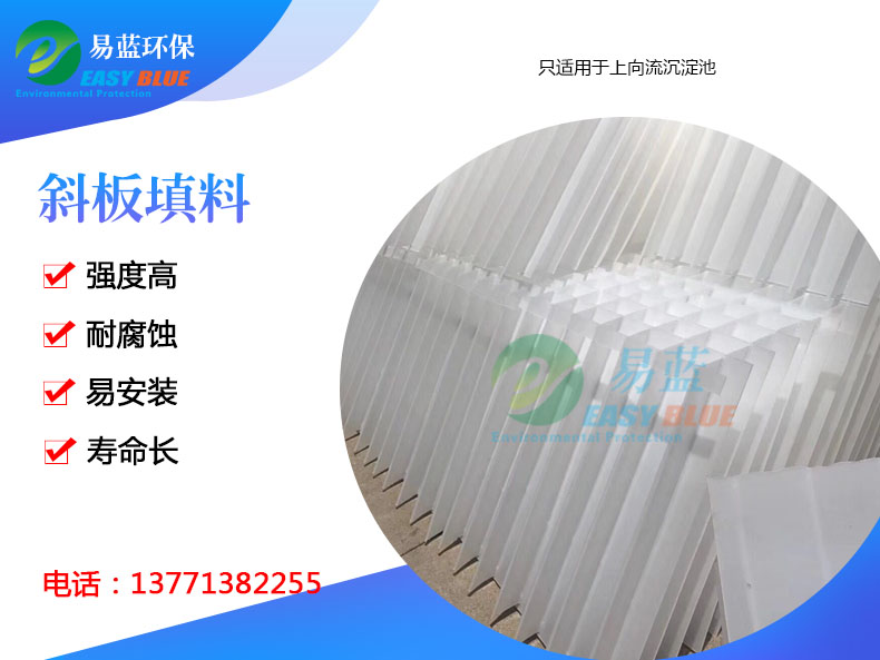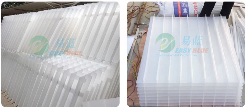 我廠生產(chǎn)的斜板,板材厚度為1mm,間距為15mm、20mm、25mm、30mm、35mm五種規(guī)格。該斜板的優(yōu)點(diǎn)是出水效果好,滑泥效果好,強(qiáng)度好,不易堵,不易倒塌。是比較理想的方形沉淀池材料。